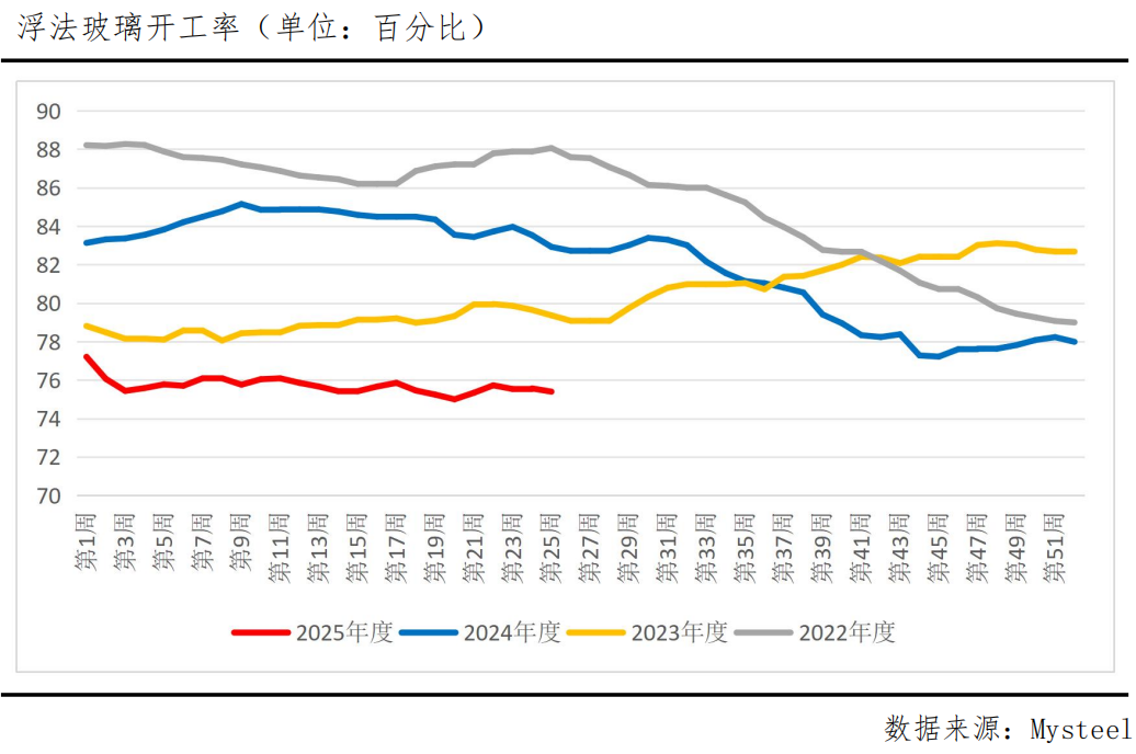 尽管纯碱短期产量出现明显下滑,但纯碱下游未见明显起色,仍以低价成交为主,纯碱库存仍处高位,去库乏力。Mysteel最新数据显示,截至6月26日,纯碱厂内库存为176.69万吨,较前一周增加4.02万吨,增幅2.33%,已连续累库4周。2月以来,纯碱库存持续处于160万吨以上的高位,从绝对值来看,当前库存水平显著高于过去三年同期水平,整体库存压力较大,这将对纯碱价格形成明显压制。